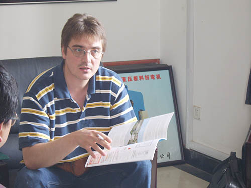 2005年7月26日上午,波蘭Projprzem Eko公司生產部總經理米奧蘇華先生等一行來我公司參觀考察,米奧蘇華先生此行來我公司主要是洽談采購數控折彎機、剪板機事宜,考察中對我公司的產品表示非常滿意!