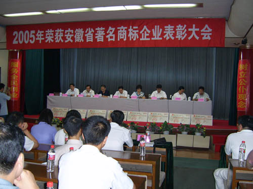 2006年7月26日下午,馬鞍山市2005年獲省著名商標企業表彰大會在市政府東二樓會議室舉行,出席本 次會議的主要領導有省工商局副局長黃家華、市人大常委會副主任杜永田、市政府副市長劉榮華、市政協 副主席孫文植、市政府副秘書長王興無、省工商局商標局局長劉國建等。