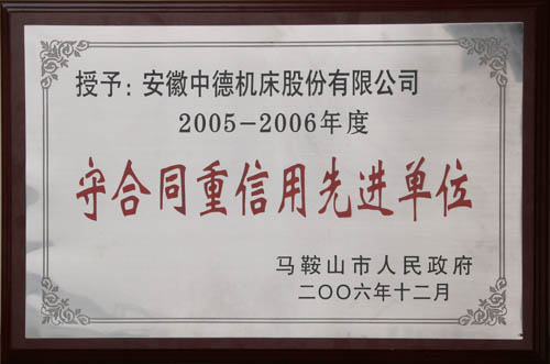 我公司成為馬鞍山市合同信用協會成立大會的理事單位,同時被市政府授予馬鞍山市2005-2006年度守合同重信用先進單位稱號。