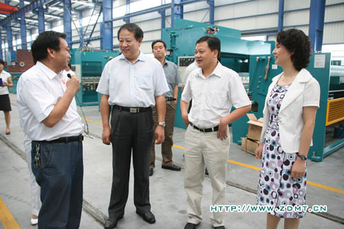 公司董事長鄭長玉向領導一行匯報了中德的發展歷程及目前的發展狀況。重點介紹了我公司在車間管理和質量監督體制方面的完善工作,并從目前的發展局勢展望更好的發展前景。王司長也關切地向公司領導了解一些機器方面的情況,在聽到鄭董事長匯報說中德不會因目前的成績而有絲毫懈怠時,王司長滿意的點了點頭。參觀過大型裝配車間后,領導一行來到了成品車間,擺放在這里的一臺雙機聯動數控折彎機迅速地吸引了大家的眼球,鄭董事長向領導介紹說這臺機器已經經過商檢并即將發往波蘭并非常自豪地說這位波蘭客商正是看中了中德的實力才會放心的與我們合作。隨后公司總經理鄭小平向領導介紹了目前中德的國外代理點及國外銷售情況,表示中德還有非常大的外貿發展空間。