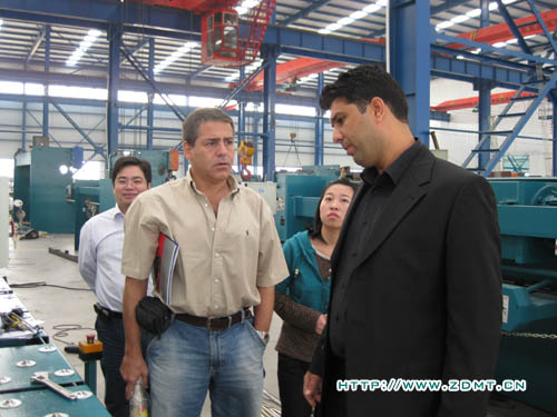 稍事休息,Atila Deniz先生和Mr.Tunc便帶著迫切的心情參觀了中德的各個車間。從裝備車間到大件車間,至電焊車間再到金工車間。客人對中德產品表現出濃厚的興趣,提出的問題也是相當專業、細致。比如,機床使用材料的鋼號,數控系統的工作效率等等,無不體現出一個機床消費成熟國的高標準。